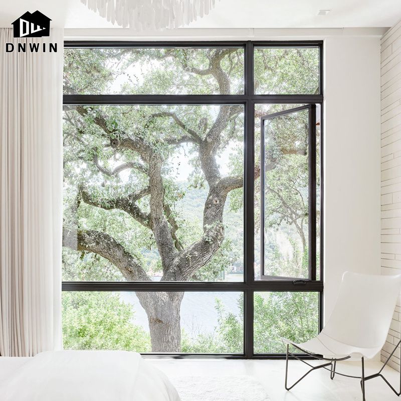 Villa interior tempered glass soundproof aluminium new crank out casement swing windows