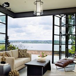 Custom villa exterior waterproof sound insulation bifolding tempered glass doors