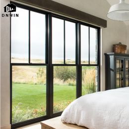 Latest design high quality villa aluminium American windows double hung double pane window grills